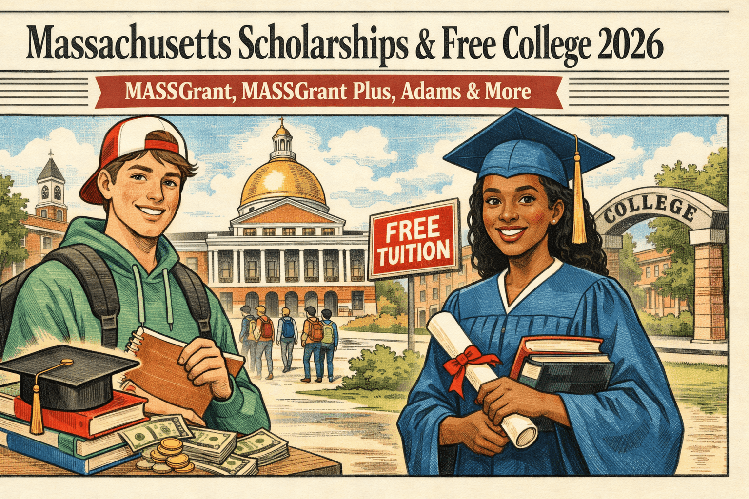 Massachusetts: Massachusetts offers the John and Abigail Adams Scholarship, a merit-based award that provides a tuition credit at Massachusetts public universities for students who score highly on state exams. In practice, Adams Scholars receive a tuition waiver for up to 8 semesters at a Mass. state university or community college (students qualify by scoring Advanced on MCAS exams and ranking in the top 25% of their district). While the Adams covers only tuition (not fees), it’s a nice perk for high-achievers. The state also has need-based aid like the MASSGrant program for low-income residents, and various specialized scholarships (for example, for foster youth, or the Stanley Z. Koplik Certificate of Mastery for academic excellence).