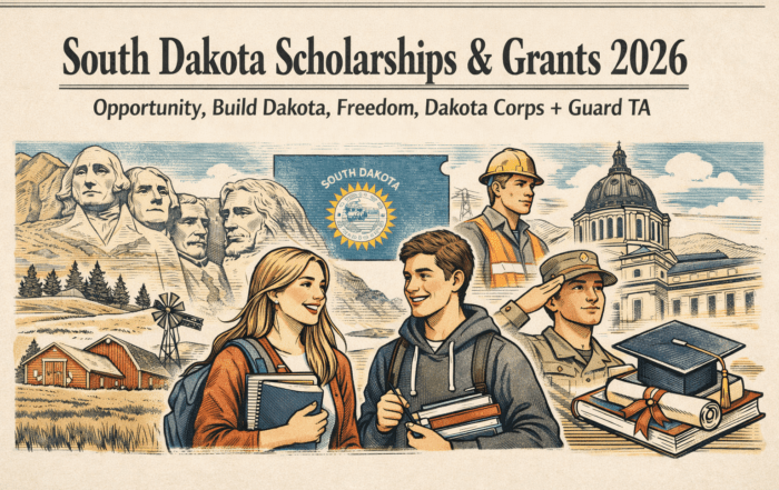 South Dakota Scholarships & Grants (Verified) One-page, verified guide to South Dakota aid: Opportunity Scholarship ($7,500 total), Build Dakota (full-ride tech), Freedom Scholarship (need-based), Dakota Corps & Critical Teaching Needs (service), Jump Start, Need-Based Grant, [...]