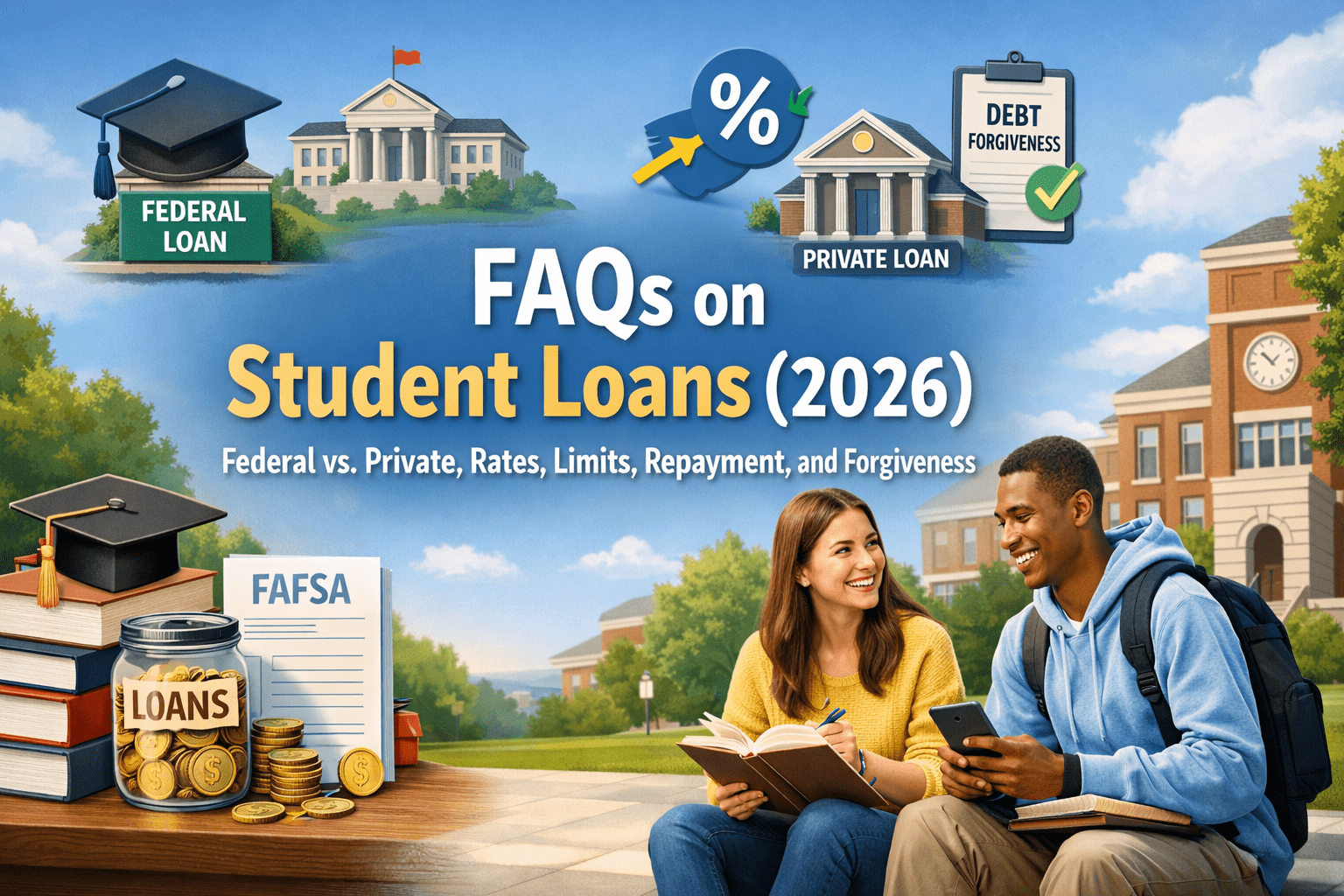 FAQs on Student Loans (2026): Federal vs. Private, Rates, Limits, Repayment, and Forgiveness