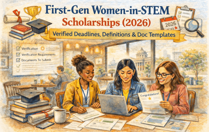 First-Gen Women-in-STEM Scholarships (2026) — Verified Deadlines, Definitions & Doc Templates
