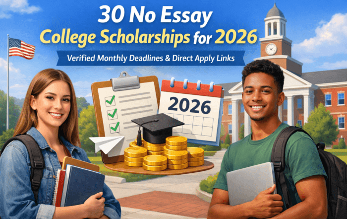 30 No Essay College Scholarships for 2026 | Verified Monthly Deadlines & Direct Apply Links Looking for real no essay college scholarships? Here are 30 active scholarships for 2026 with verified amounts, deadlines, and direct [...]