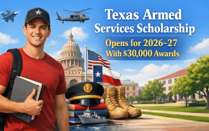 Texas Armed Services Scholarship Opens for 2026–27 With $30,000 Awards Texas has opened the 2026–27 Texas Armed Services Scholarship appointment process, and the headline number is strong: eligible students can receive up to $30,000 per [...]