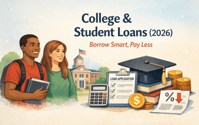 College & Student Loans (2026): Borrow Smart, Pay Less 2026 federal loan rates/fees, annual limits, grace rules, SAVE/IDR basics, PSLF, consolidation—plus official tools (Loan Simulator, PSLF Help Tool). Student lending sits at the intersection of [...]